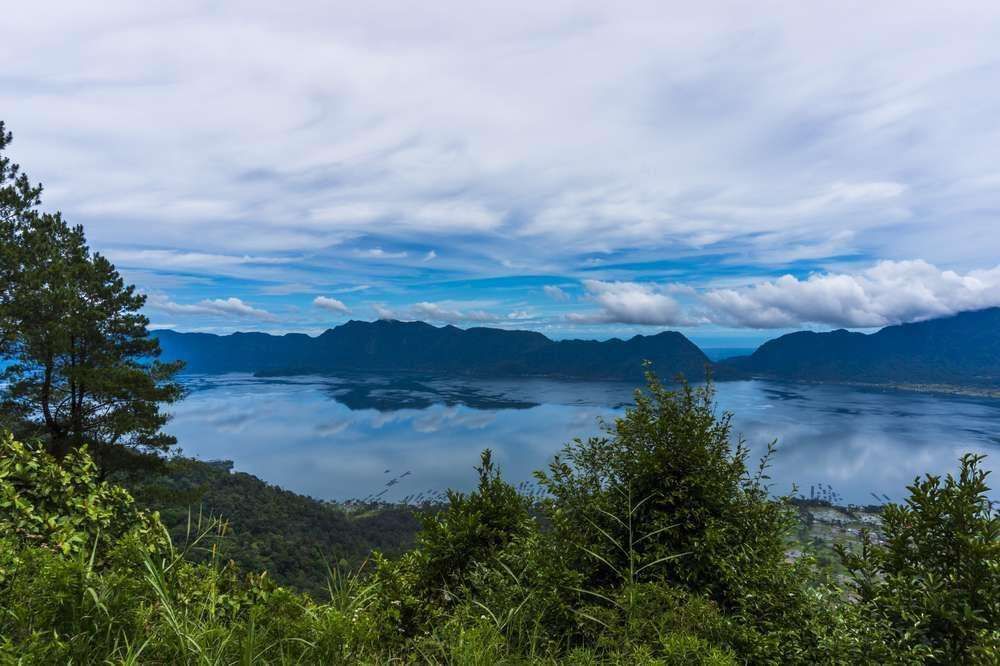 Dari titik-titik tertentu, bentang alam hijau terlihat berlapis, menciptakan visual khas perbukitan Sumatera.