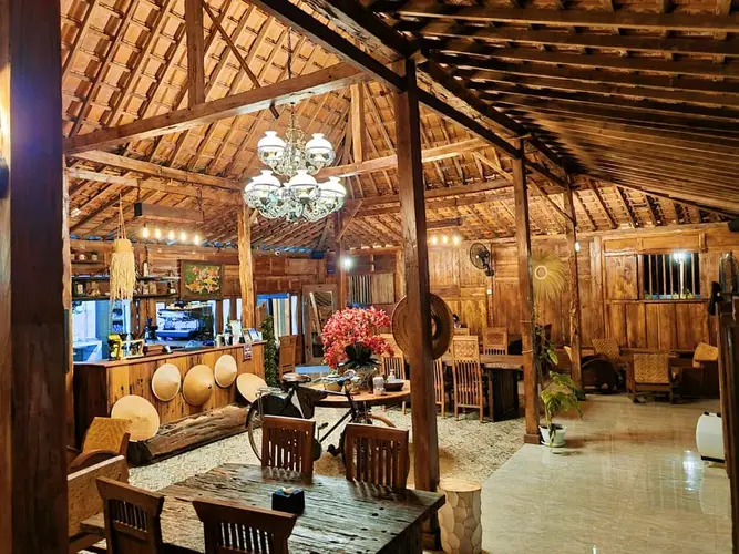 Restoran ini menghadirkan nuansa rumah Joglo khas Jogja dengan suasana asri dan pepohonan rindang.