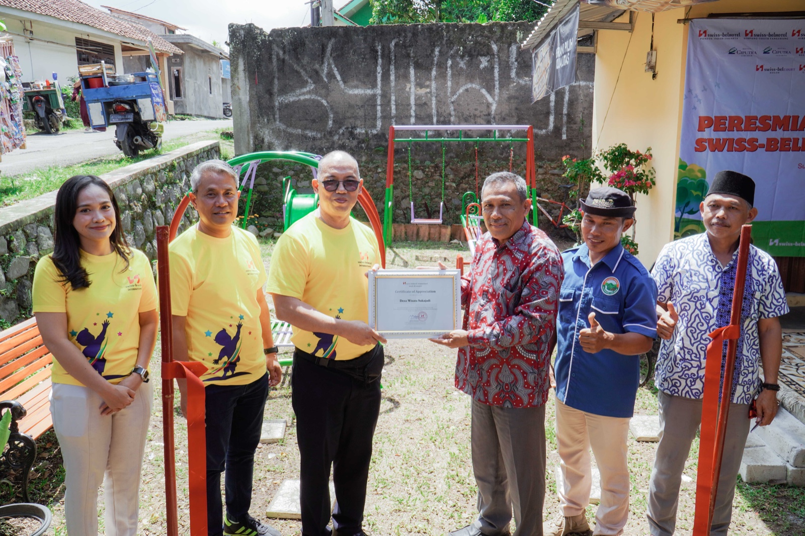 Peresmian taman bermain dilaksanakan pada 5 Desember 2025. Acara tersebut dihadiri jajaran manajemen Swiss-Belhotel International, perangkat desa, serta warga sekitar. Kegiatan ditutup dengan sesi bermain bersama anak-anak dan penyerahan fasilitas taman bermain secara simbolis kepada perwakilan warga Desa Sukajadi.