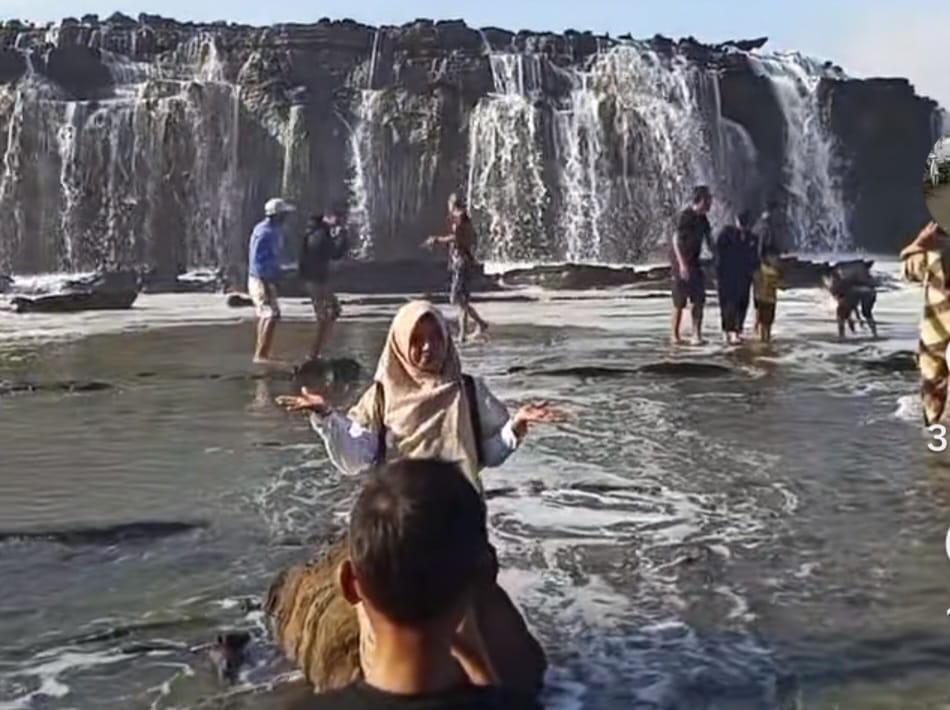 Daya tarik utama pantai ini adalah fenomena alam yang langka: air terjun mini alami di tengah laut. Waterfall buatan alam ini tercipta saat ombak besar khas Laut Selatan menghantam dinding karang yang menjulang, lalu airnya turun kembali ke lautan, menciptakan ilusi air terjun yang dramatis dan memukau.