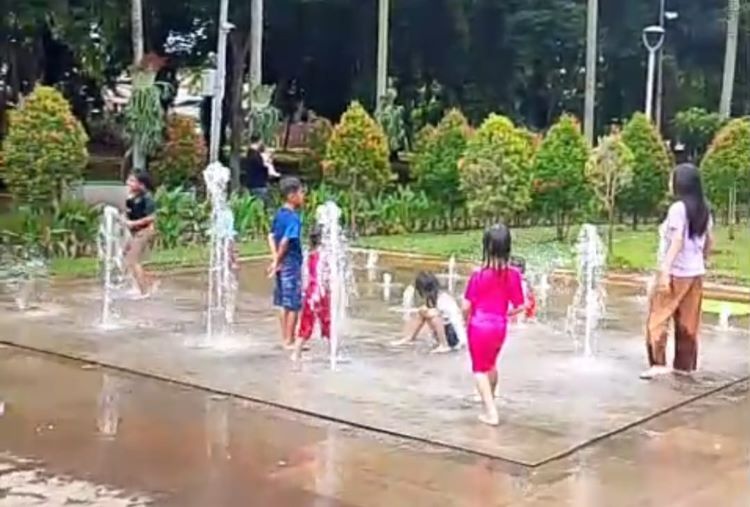 Tanpa ragu, anak-anak yang datang lengkap dengan baju ganti langsung menceburkan diri, menikmati kesegaran air di tengah teriknya matahari Jakarta. Tawa renyah pecah setiap kali air menyembur lebih tinggi, menciptakan suasana liburan yang hangat dan berkesan.