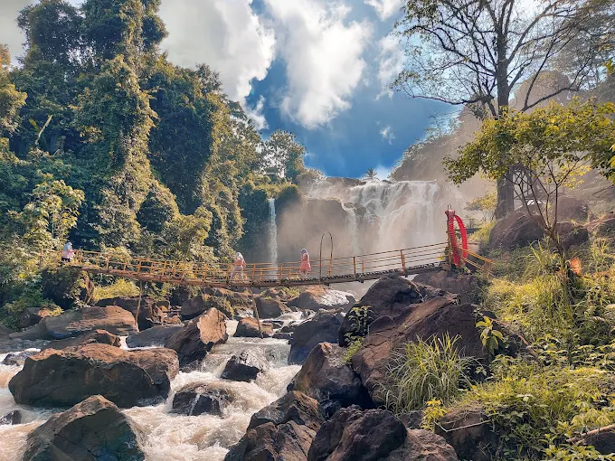 - Gunakan alas kaki yang nyaman dan aman, karena jalur menuju air terjun melalui tangga dan bebatuan.