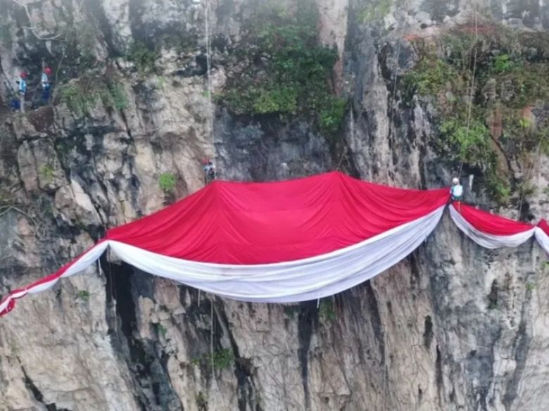Dengan ukuran 50 x 80 meter dan berkibar di ketinggian 100 meter, sang saka ini bukan hanya memecahkan rekor Museum Rekor Dunia Indonesia (MURI) sebagai bendera terbesar di Indonesia yang dibentangkan di tebing alam, tetapi juga menjadi simbol kebanggaan Kabupaten Bogor dalam memperingati HUT Kemerdekaan RI ke-80 tahun 2025.