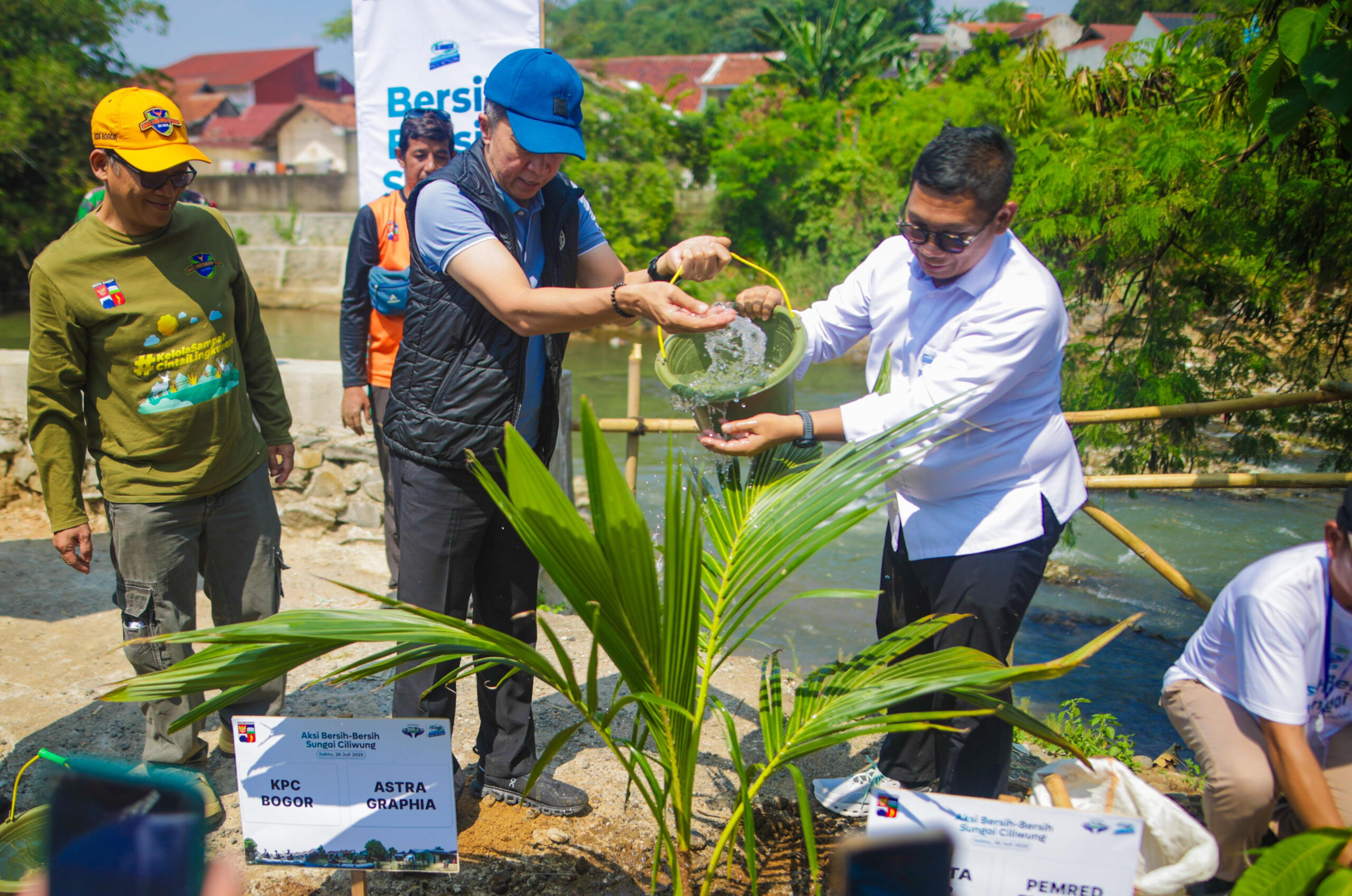 Tak hanya bersih-bersih sungai, kegiatan juga diisi dengan penanaman 100 pohon di bantaran Sungai Ciliwung, tepatnya di kawasan Saung Alkesha, Kedung Halang, Bogor Utara.