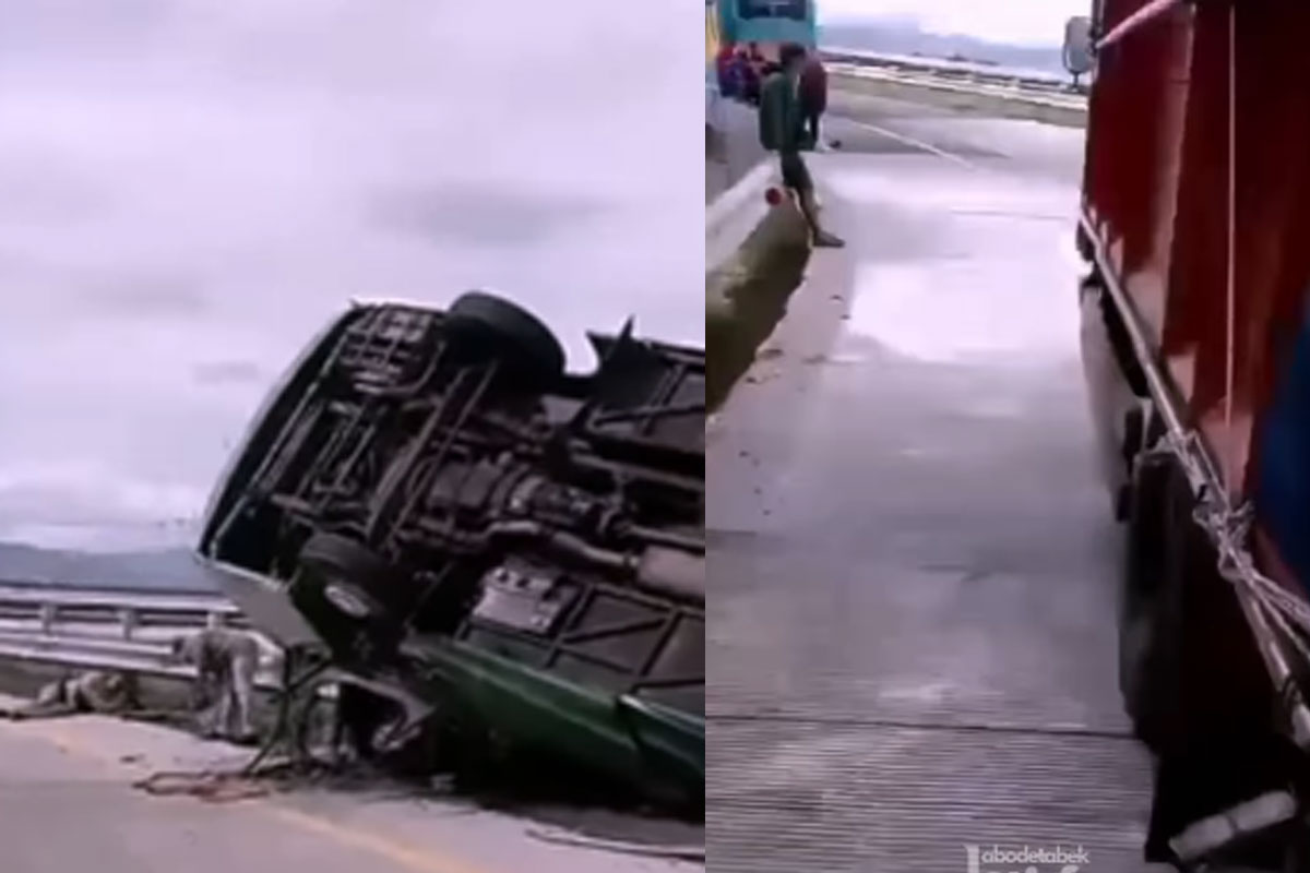 Sebuah bus wisata dengan nomor polisi DK 9296 AH mengalami kecelakaan tunggal hingga terguling di jalur tol tersebut.
