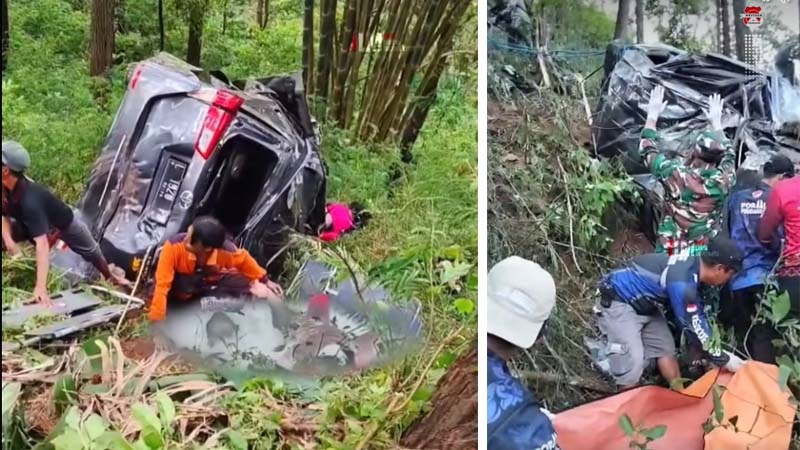 KITAINDONESIASATU.COM – Kecelakaan mengerikan terjadi di ruas jalur ekstrem Cangar-Pacet, Kabupaten Mojokerto melibatkan mobil Innova L 1928 FB masuk jurang di kedalaman 30-50 meter, Minggu (5/10/2025) pukul 15:00 WIB.