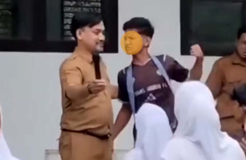 Namun bukannya meminta maaf, siswa justru malah justru petentang petenteng bersikap arogan menantang sang guru.
