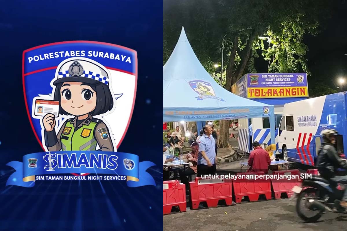 SIMANIS merupakan layanan perpanjangan SIM malam hari buka dua kali dalam seminggu di Taman Bungkul Kota Surabaya khusus perpanjangan SIM A dan C saja.