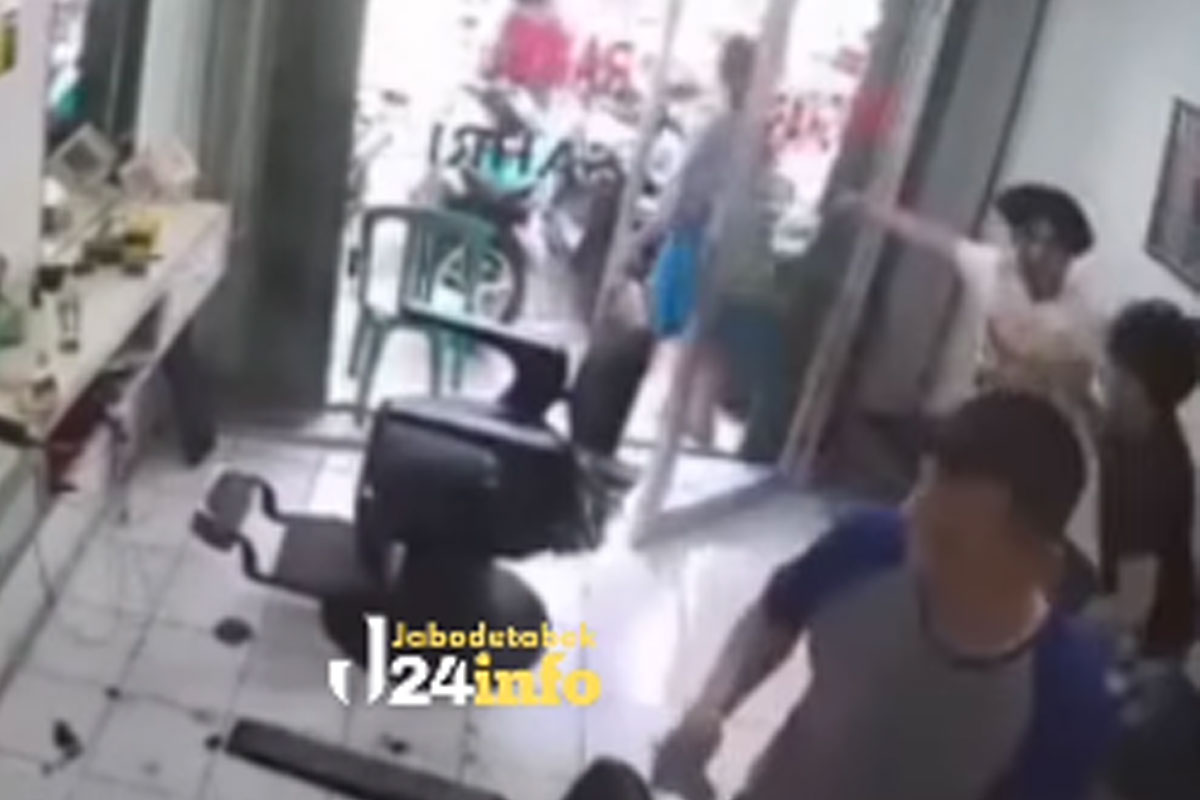 Dalam video yang beredar di media sosial terlihat pria mengenakan hoodie hitam keluar dari dalam pangkas rambut.