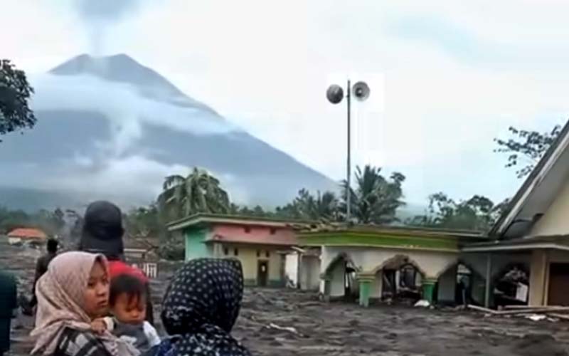 “Astaghfirullah, desa ini jadi aliran sungai baru, yang sebelumnya ini pemukiman penduduk, sekarang sudah menjadi menjadi sungai aliran lahar di sini,” ujar seorang netizen yang meporkan secara langsung dengan unggahan videonya.