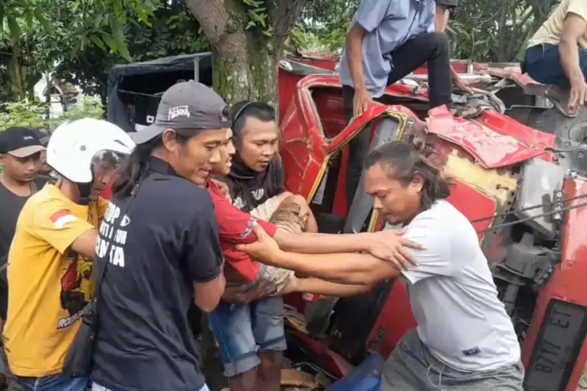 Petugas kepolisian bersama warga berusaha mengevakuasi secara dramatis selama kurang lebih satu jam hingga akhirnya seluruh korban berhasil dikeluarkan dari jepitan bodi kendaraan.