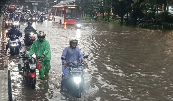 “Untuk sementara kami berlakukan contra flow khusus sepeda motor karena banjir sudah merendam jalan sejak pagi,” kata Wakil Kepala Satuan Lalu Lintas Polres Metro Jakarta Timur, Kompol Sunaryo.
