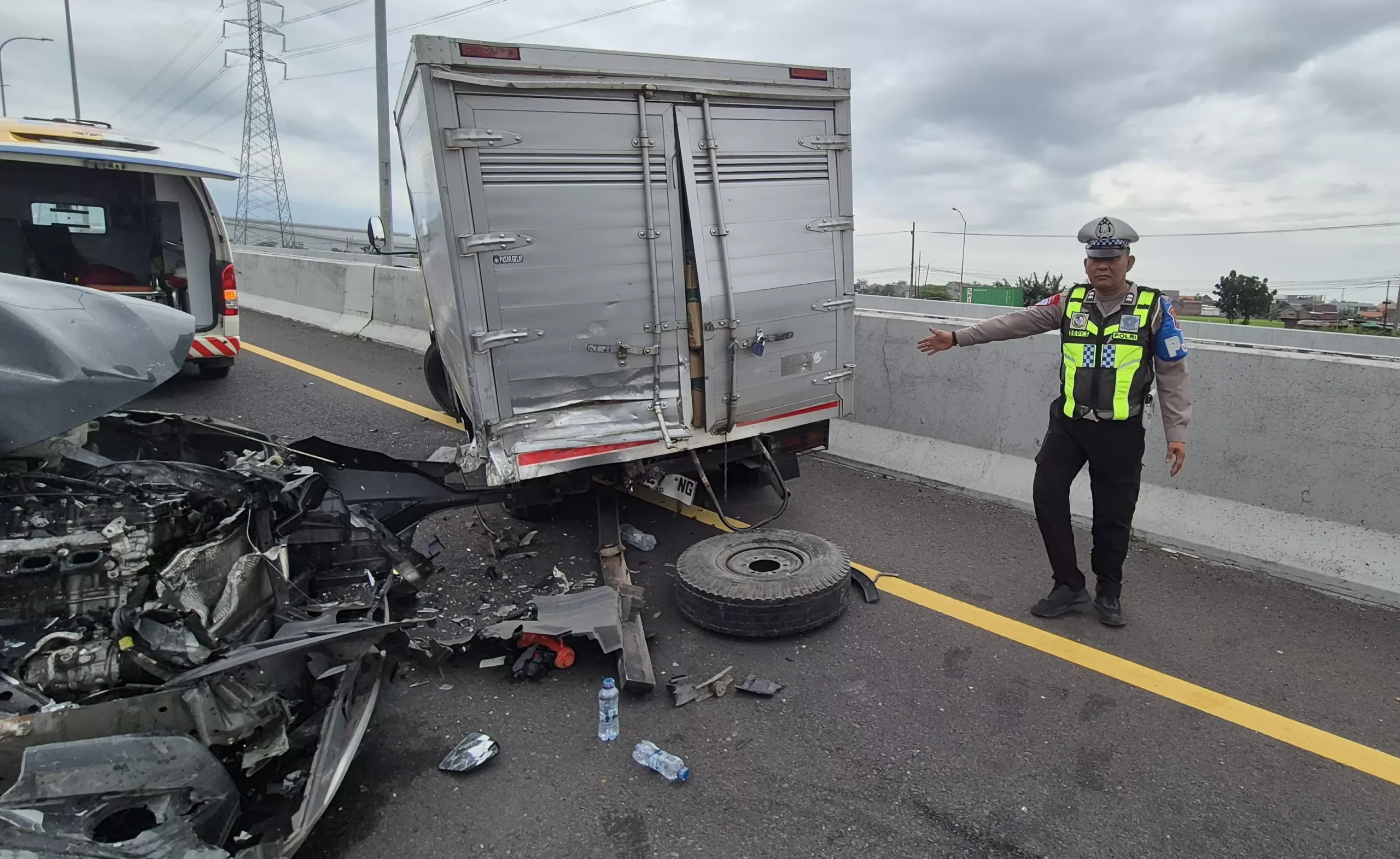 Berdasarkan informasi kepolisian, kecelakaan bermula saat truk box mengalami pecah ban ketika melaju di lajur kanan.