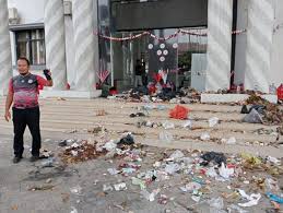 KITAINDONESIASATU.COM-Warga di sekitar Tempat Pembuangan Akhir (TPA) Bangkonol, Pandeglang, melakukan protes kerja sama antara Pemkab Pandeglang dengan Pemkot Tangsel tentang pembuangan sampah. Unjuk rasa kali ini diwarnai dengan pembuangan kantong sampah di depan Gedung Kantor Bupati Pandeglang, Selasa (12/8/2025).