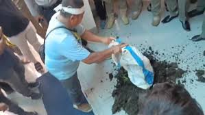 Massa demo juga menebar kotoran sapi ke Setda Pandeglang, Kantor Dinas Lingkungan Hidup (DLH) setempat untuk menyuarakan hal yang sama. Dalam aksi itu, massa sempat membawa foto salah satu pejabat Pemkab Pandeglang dan diletakkan di atas kotoran sapi.