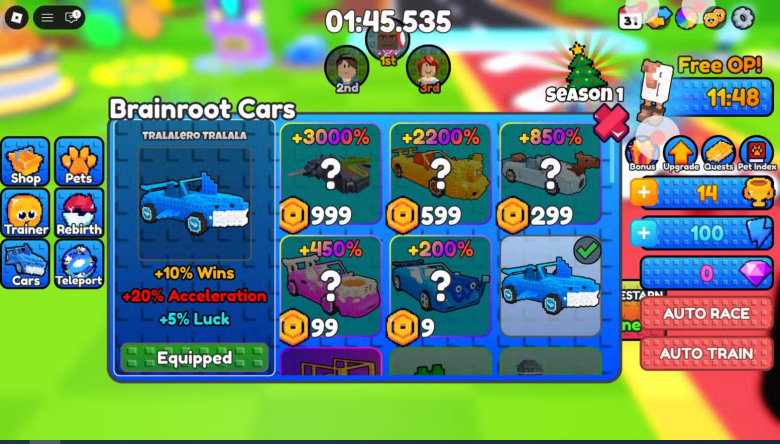 Selain adu kecepatan, Kode Redeem Roblox Ride a Brainrot ini juga menuntut strategi dalam mengatur upgrade, booster, serta koleksi item pendukung.