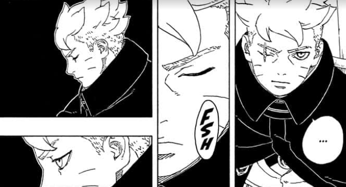 Boruto memasuki alam bawah sadar dan berhadapan dengan Momoshiki yang terjebak di dalam dirinya. Dalam momen itu, Boruto menawarkan tubuhnya agar dipinjam Momoshiki dengan syarat ia memberikan kekuatan untuk melawan Jura.