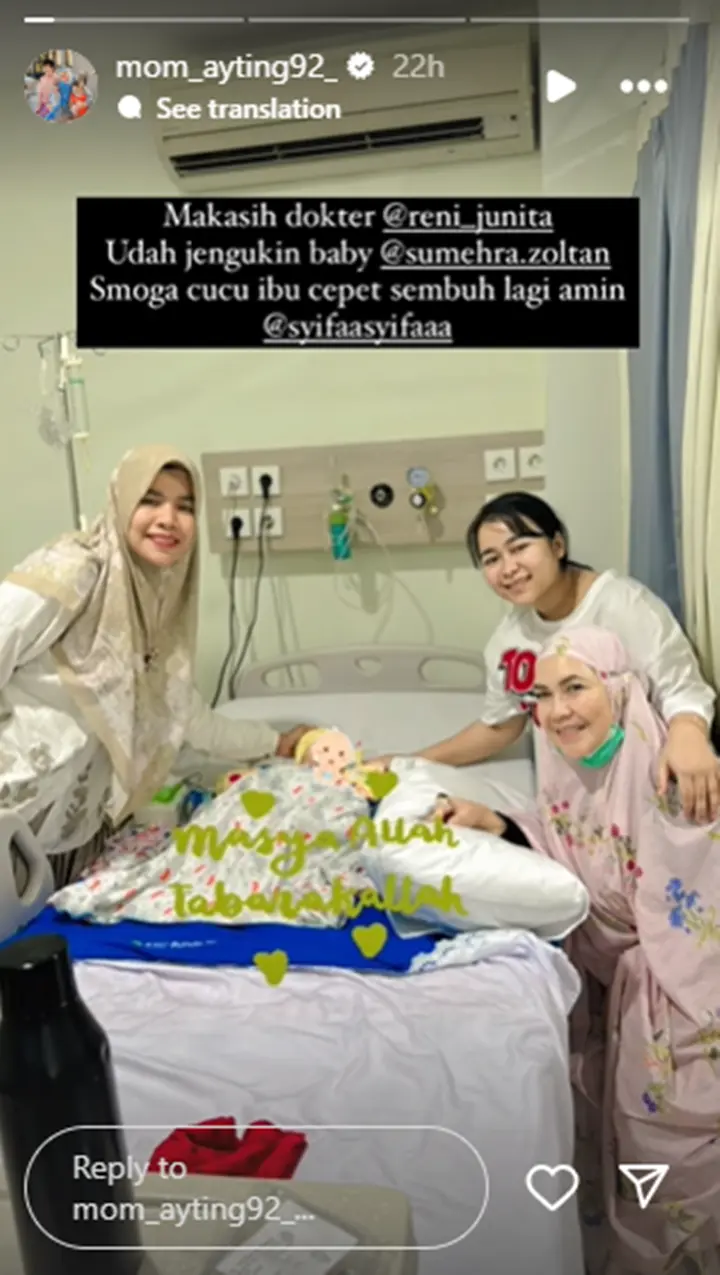Sebelumnya dalam Instagram Stories miliknya, ibunda Ayu Ting Ting, Umi Kalsum sempat memperlihatkan sedang berada di salah satu rumah sakit.