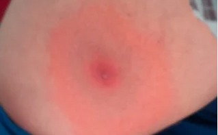 • Ruam khas berbentuk bull’s eye (berbentuk cincin konsentris di sekitar bekas gigitan)