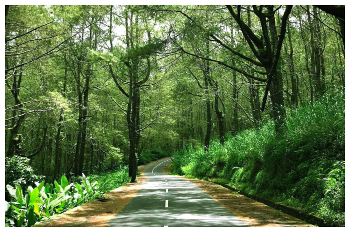 Salah satu spot yang paling menarik adalah hutan pinus, yang bisa dicapai dengan berjalan kaki tanpa perlu pemandu.