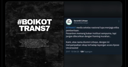 Tayangan yang disiarkan pada 13 Oktober 2025 itu memicu reaksi luas dari masyarakat, terutama kalangan santri. Tagar #BoikotTRANS7 pun ramai bergema di media sosial.