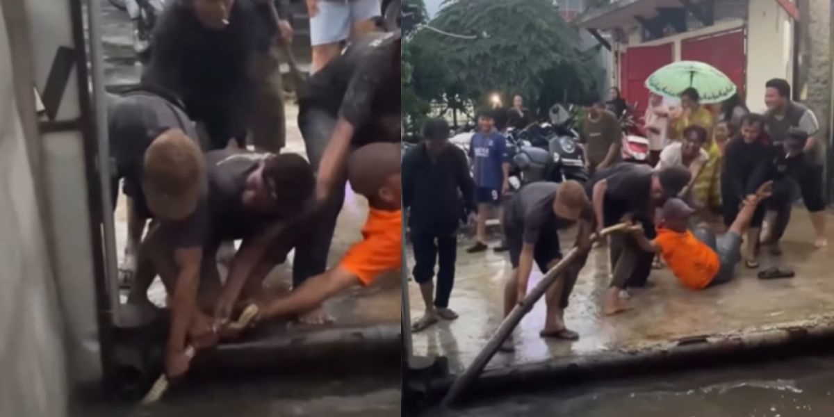 Evakuasi Ular Piton Berukuran Besar di Permukiman Padat Jadi Tontonan Viral