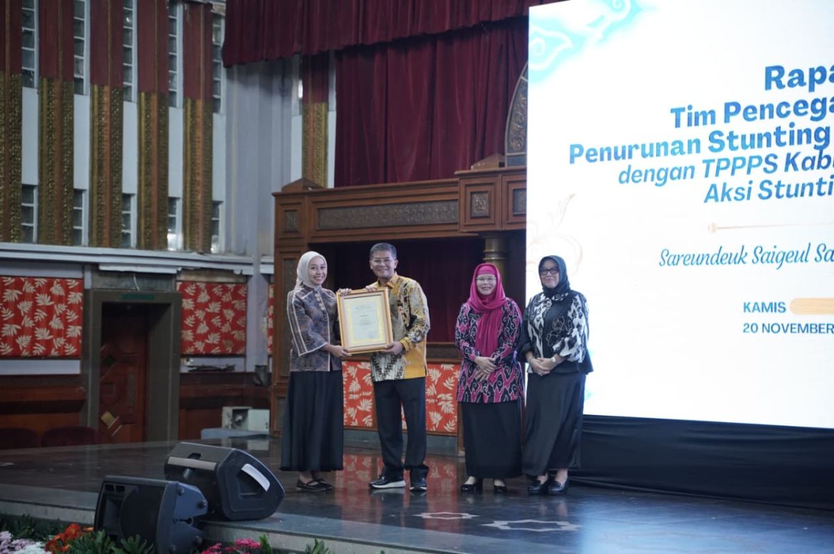 Penghargaan diberikan dalam forum Rapat Koordinasi Tim Pencegahan dan Percepatan Penurunan Stunting (TPPPS) Jabar yang digelar di Bale Asri Pusdai, Kota Bandung, Kamis (20/11/2025).