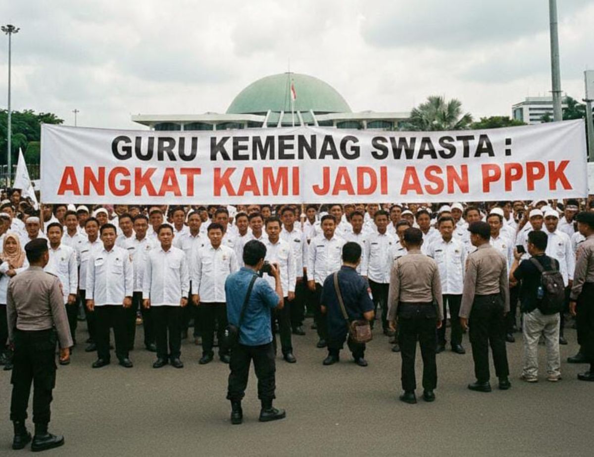 KITAINDONESIASATU.COM – Perkumpulan Guru Madrasah (PGM) Indonesia menggelar aksi penyampaian pendapat di depan Gedung DPR RI, Senayan, Jakarta, pada Rabu (11/2/2026).