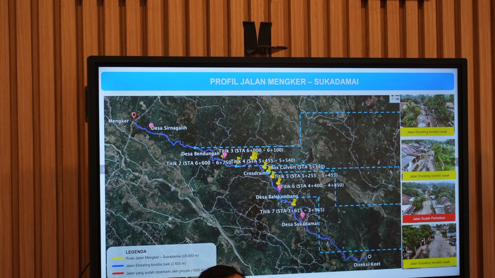 Sementara itu, pihak BBWS menjelaskan bahwa peningkatan dan perbaikan jalan sebenarnya telah direncanakan melalui pekerjaan rigid beton pada dua jalur utama, yakni Jalan Mekarwangi–Karyamekar dan Jalan Mengker–Sukadamai. Untuk ruas Mekarwangi–Karyamekar, pekerjaan rigid beton telah terlaksana hampir sepanjang 4 kilometer. Sedangkan pada ruas Mekarwangi–Sukadamai, pembangunan rigid beton telah mencapai sekitar 1 kilometer.