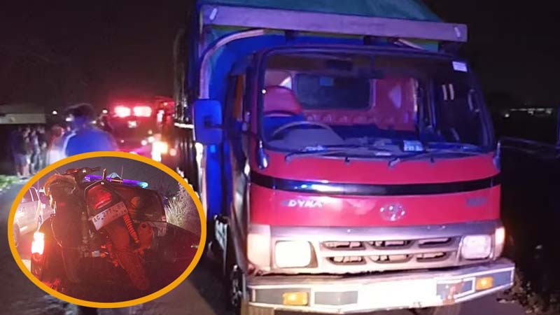 Saat menyalip motor di depannya sepeda motor korban menyenggol motor Ahmad Fauzi hingga mereka terjatuh, nahas saat bersamaan melaju truk Dyna adri arah berlawanan mengangkut pakan ternak.