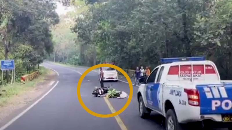 Dari informasi yang diperoleh mengungkapkan tubuh korban tergeletak di dekat sepeda motornya yang dalam kondisi ringsek tergeletak di tengah jalan kawasan hutan yang sepi dari aktivitas warga.