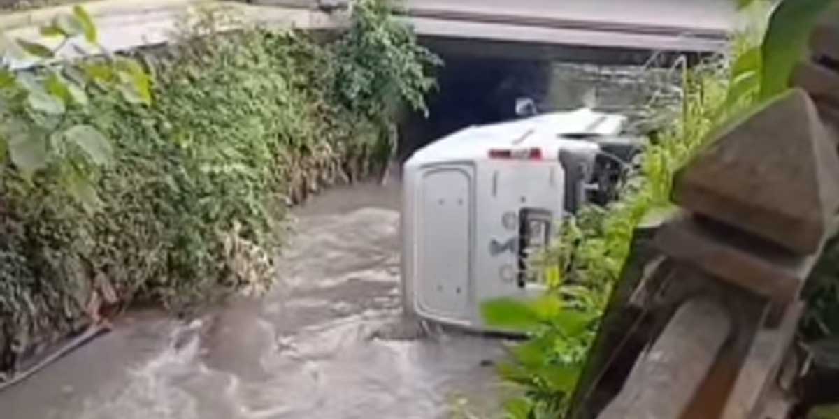 Dalam upaya menghindar, pengemudi kehilangan kendali sehingga kendaraan membanting setir ke kiri dan jatuh ke kali.