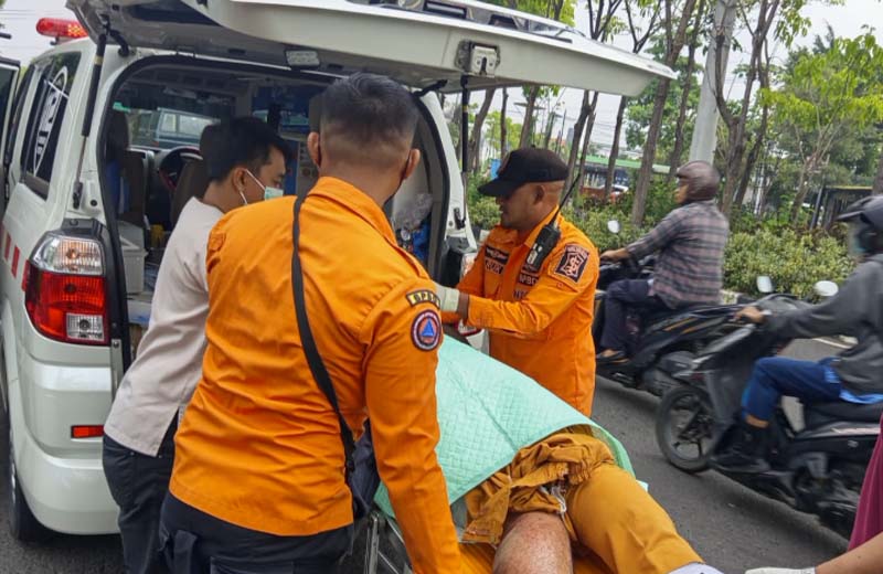 Akibat kejadian itu korban mengalami luka parah bagian bawa perut hingga paha kanan, langsung dievakuasi ke RSUD Dr Sutomo Surabaya menggunakan ambulan TGC.