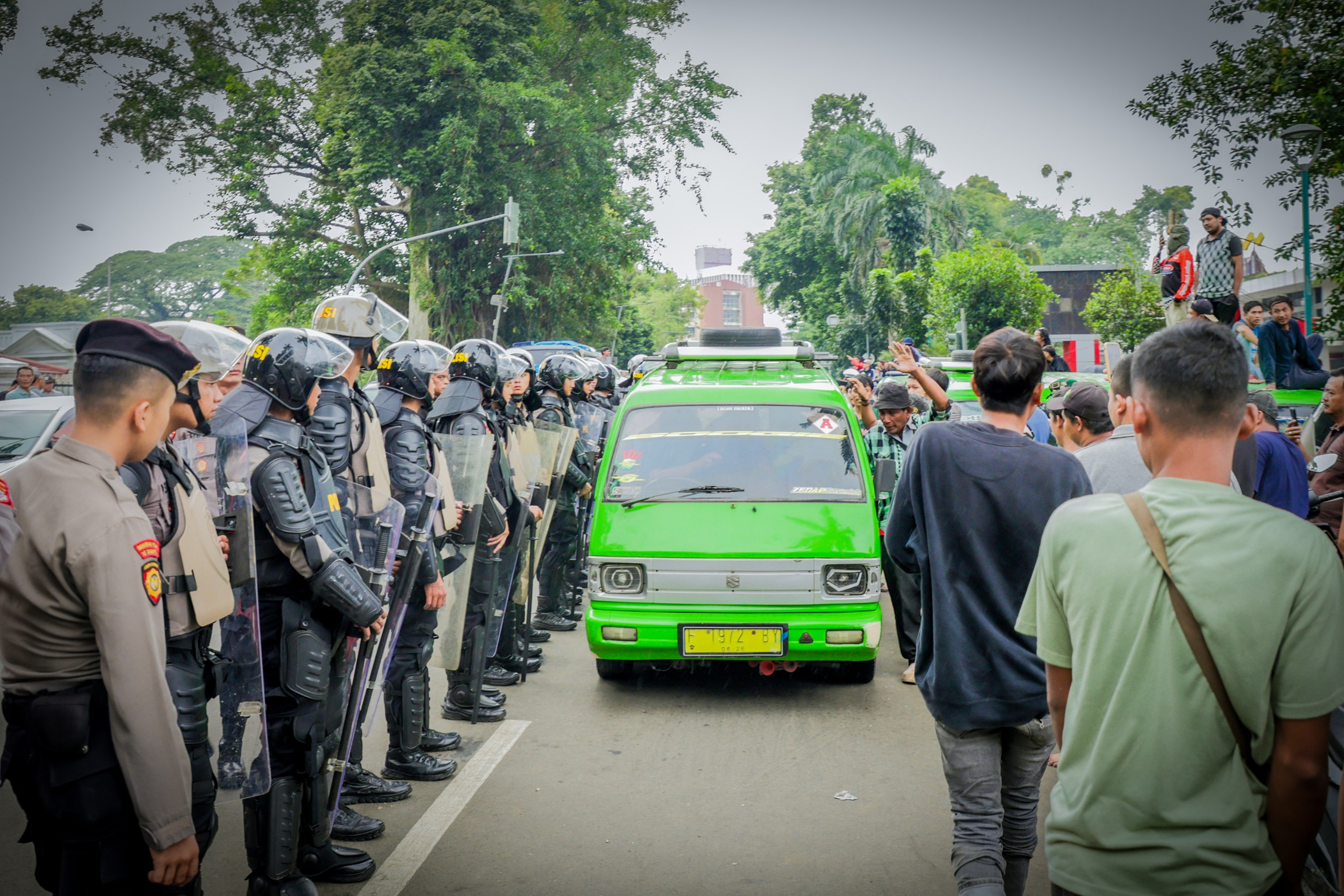 Sebagai informasi, ratusan pemilik dan pengemudi angkot melakukan aksi di halaman Balai Kota Bogor. Mereka menolak penegakan Perda yang menghilangkan angkot berusia di atas 20 tahun serta meminta kelonggaran dan penambahan masa penggunaan. (Nicko)