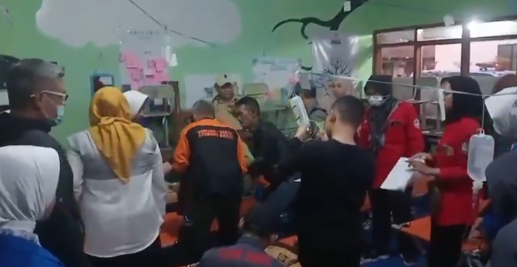 Suasana sekolah sempat panik ketika beberapa siswa jatuh lemas di area kelas dan halaman, sebelum petugas medis datang memberikan pertolongan pertama.