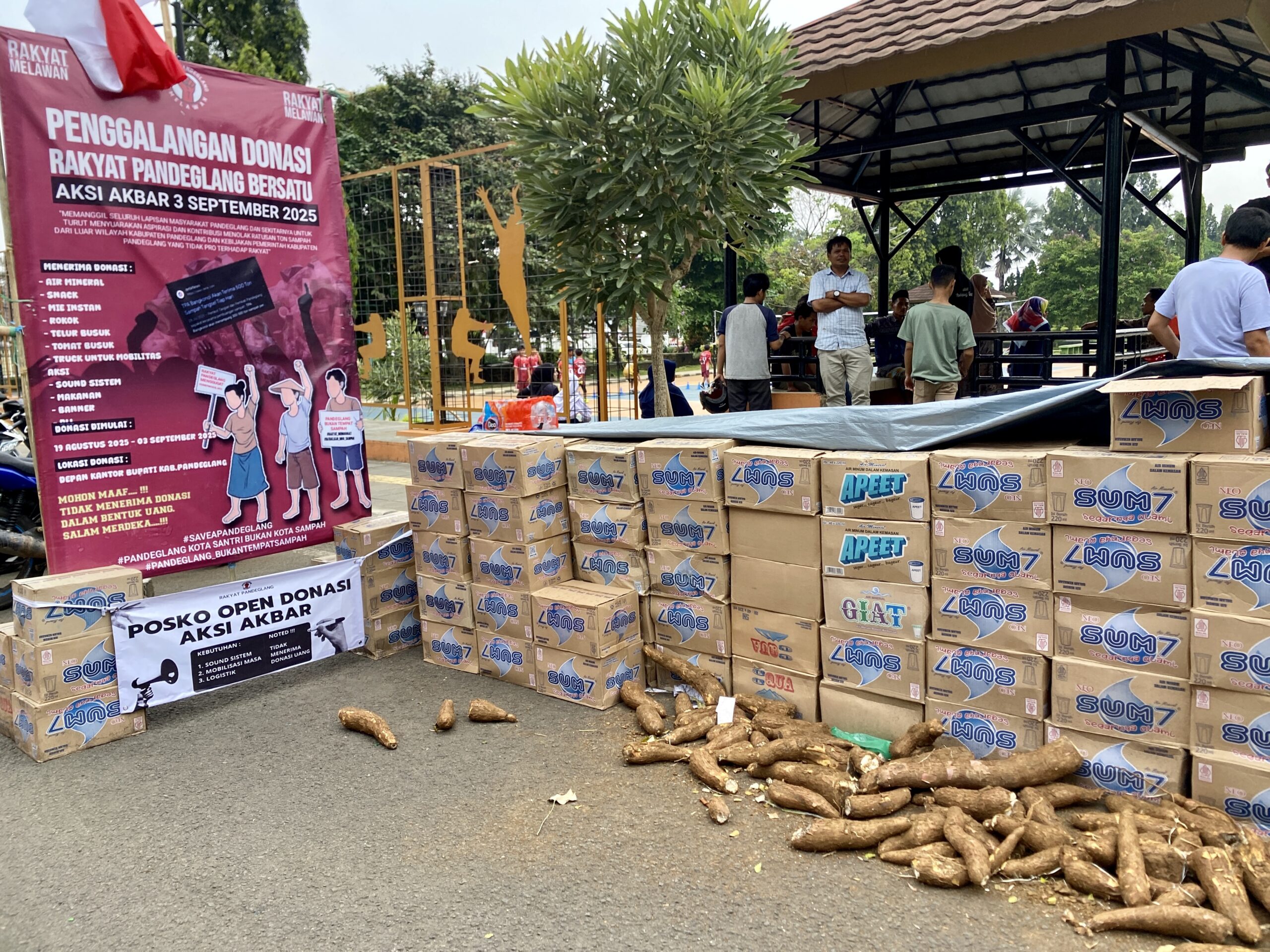 KITAINDONESIASATU.COM-Masyarakat yang mengatasnamakan Rakyat Pandeglang Melawan tengah menggalang donasi dengan membuka Posko Galang Donasi di seberang Pendopo Bupati Pandeglang. Donasi tersebut sebagai dukungan logistik dalam rangka aksi unjuk rasa akbar menolak kerja sama pengelolaan sampah Kota Tangerang Selatan (Tangsel) dan Kabupaten Pandeglang pada 3 September 2025,