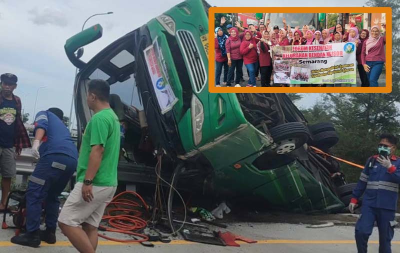 KITAINDONESIASATU.COM – Bus pariwisata rombongan piknik dari Forum Kesehatan Kelurahan Bendan Ngisro Semarang tujuan Guci Tegal mengalami kecelakaan di exit Tol Gandulan, Pemalang Sabtu (25/10/2025).