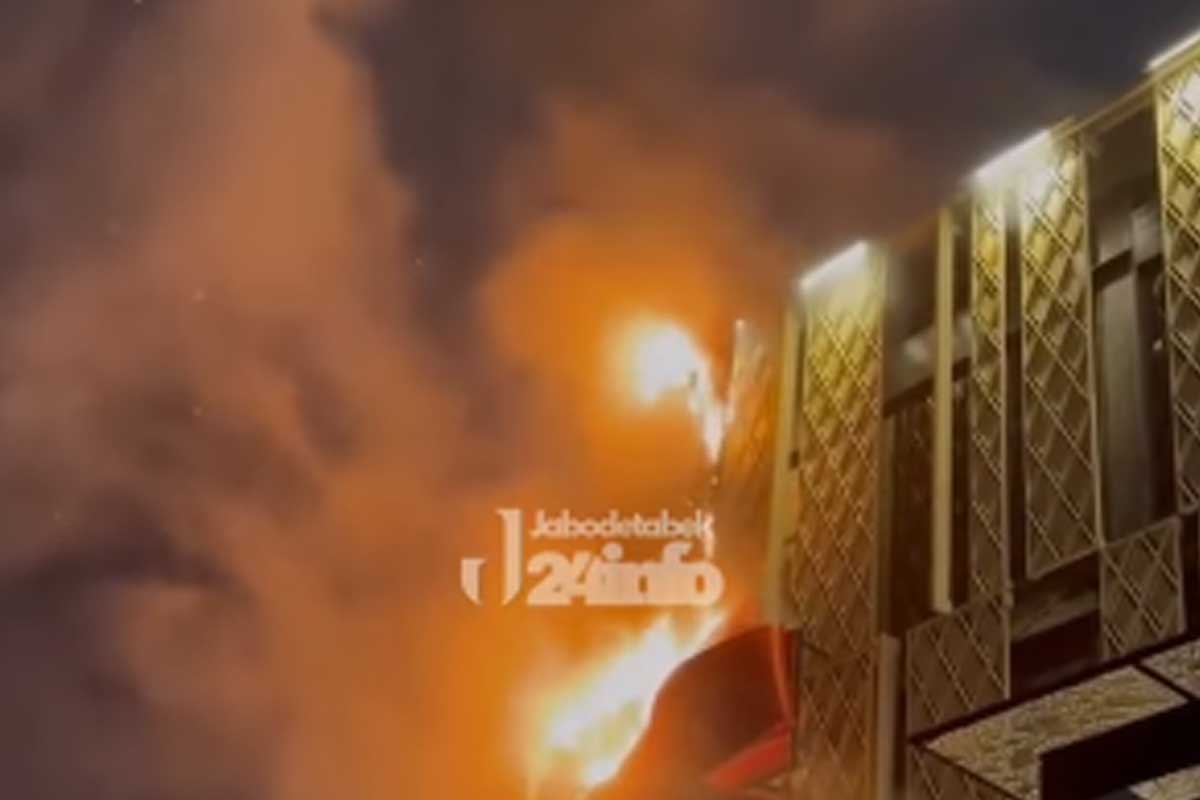 Dalam rekaman tersebut, kobaran api terlihat membakar bagian luar bangunan dan merambat ke atas, disertai asap hitam pekat yang membumbung tinggi serta meninggalkan bekas jelaga pada dinding gedung.
