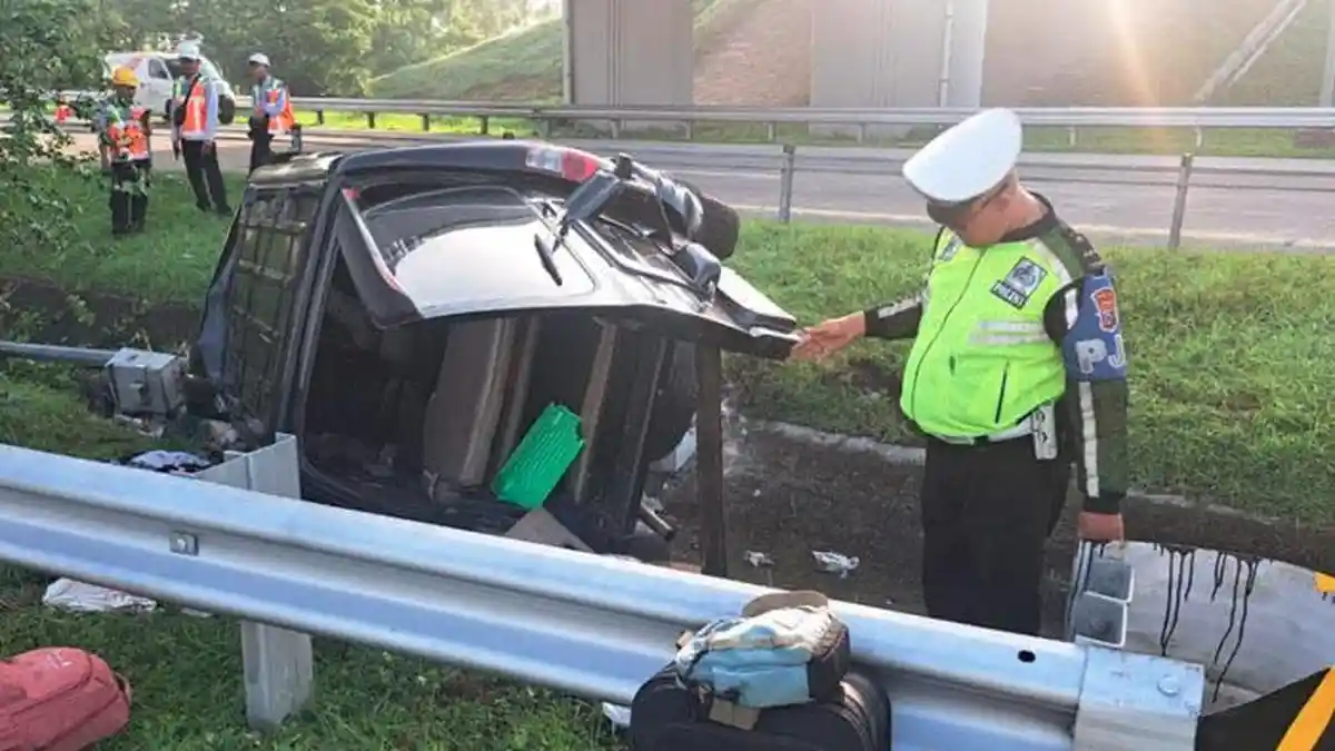 Diduga Sopir Mengantuk! Mobil Isuzu Panther Terbalik di Tol Jombang–Mojokerto, Begini Kondisi Korban