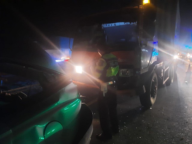 Diduga sopir mengantuk, kendaraan tracktor head yang dikemudikan Suhemin (35) warga Kabupaten Tegal menabrak bagian belakang Avanza A1737 RT yang dikemudikan Hablullah (49) warga Grogol, Kota Cilegon.