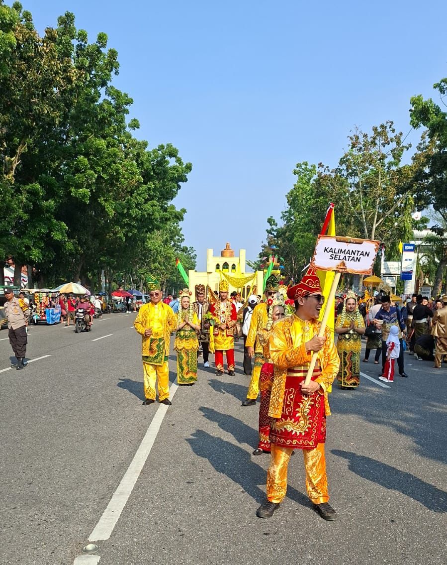 Kontingen Kalsel berjumlah 29 orang, terdiri dari perwakilan bidang kebudayaan, taman budaya, seniman madihin, mahasiswa Program Studi Seni Pertunjukan Universitas Lambung Mangkurat, anggota HARPI Melati, Geopark Meratus, Badan Penghubung Jakarta, serta 12 pelajar keturunan Banjar yang menetap di Pekanbaru.