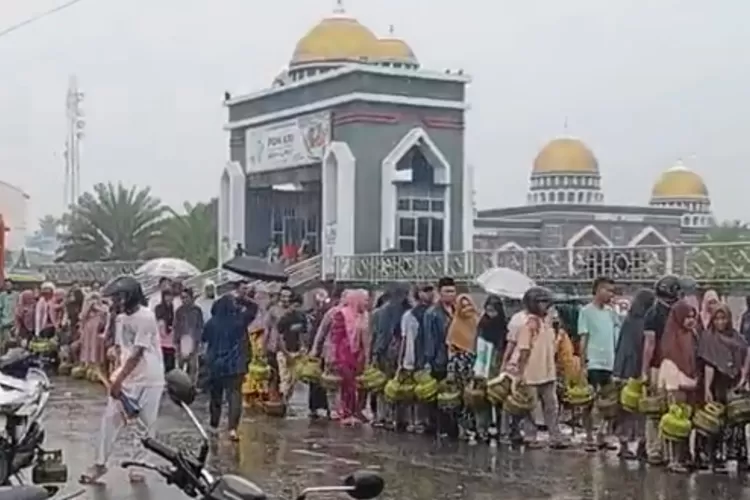Dalam video yang disebut terjadi di Aceh Tenggara tersebut memperlihatkan para warga yang mengantre gas LPG 3 kg sambil hujan-hujanan.