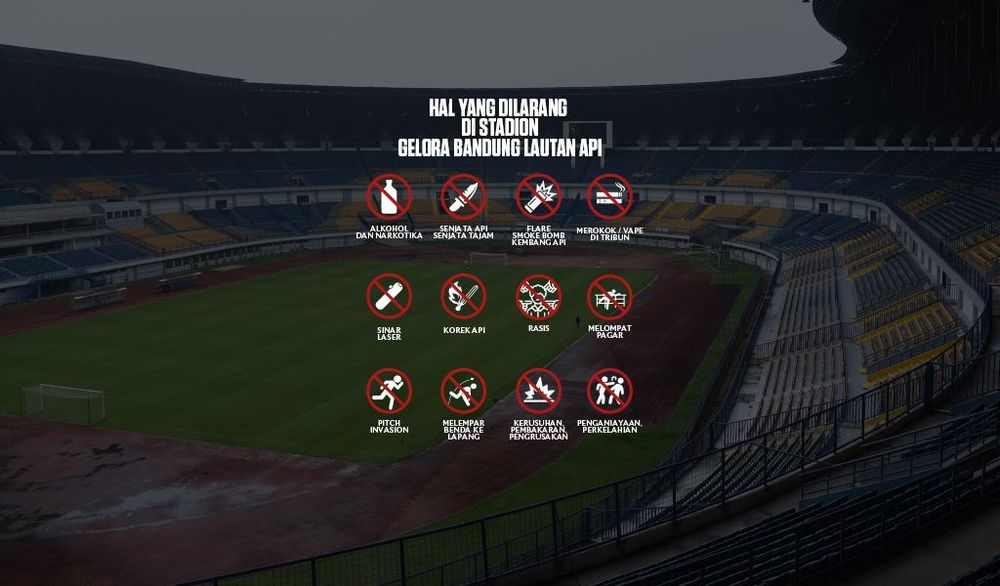 Salah satu penekanan utama adalah larangan keras menyalakan flare, petasan, kembang api, maupun benda lain yang mengandung bahan peledak.
