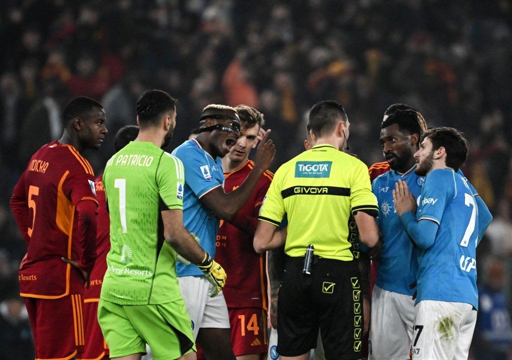 Napoli juga menurunkan formasi 3-4-2-1 yang sama, menunjukkan bahwa mereka ingin memberikan respons taktis terhadap pendekatan Roma. Posisi penjaga gawang ditempati oleh Vanja Milinković-Savić, kiper bertubuh tinggi yang memiliki jangkauan luas serta keunggulan dalam menepis bola udara, sehingga sangat cocok menghadapi gaya bermain Roma yang sering mengandalkan bola-bola silang.