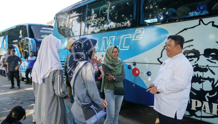 Anggota DPRD Kota Bogor, Endah Purwanti (Kemeja Putih), menghadiri pembukaan Festival Ramadhan PGS 2026 yang sekaligus dirangkaikan dengan peluncuran koperasi pedagang di Pasar Gembrong, Sukasari, Bogor Timur. (Kis/ist)