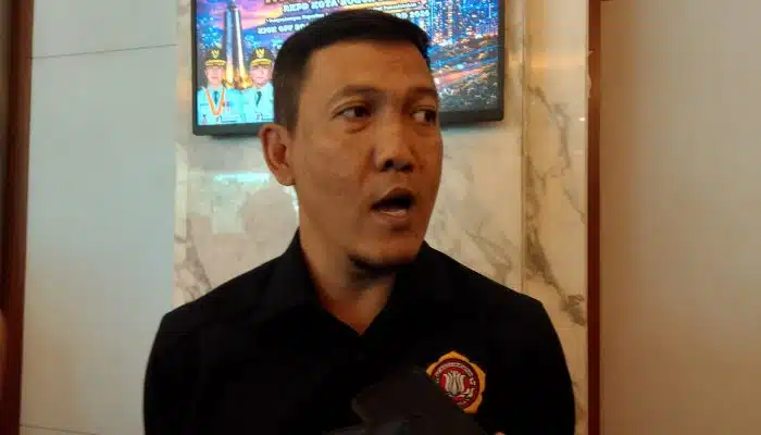 Ketua Karang Taruna Kelurahan Cilendek Barat, Sandi Satriadi, saat memberikan pernyataan (statement) kepada awak media terkait pelaksanaan Bazar Ramadan dan pemberdayaan UMKM lokal di Spot Kuliner Cilendek Barat. (KIS)