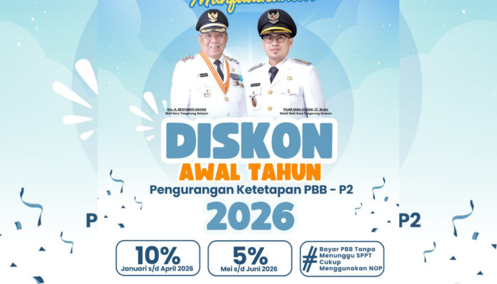 Pemerintah Kota Tangerang Selatan memberi hadiah khusus kepada warga di awal 2026. Hadiahnya yaitu pemberian diskon khusus bagi pembayaran Pajak Bumi dan Bangunan Perdesaan dan Perkotaan (PBB-P2).