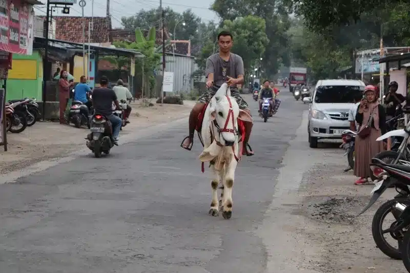 Heboh! Akbar Berburu Takjil di Ponorogo Naik Sapi Kesayangan