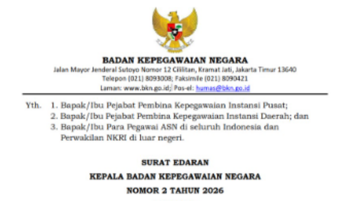 Berita Utama Surat Edaran Kepala BKN Nomor 2 Tahun 2026: Aturan Baru Seragam Batik KORPRI untuk ASN 28 Jan 2026 10:0028 Jan 2026 10:23