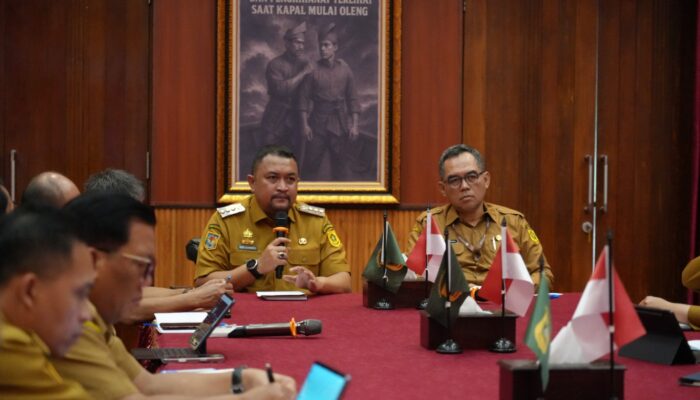 Wakil Wali Kota Bogor, Jenal Mutaqin, bersama Bupati Bogor, Rudy Susmanto, membahas perpanjangan kerja sama pengelolaan sampah dan rencana PSEL di TPAS Galuga, di Pendopo Bupati Bogor, Cibinong. (Kis/ist)